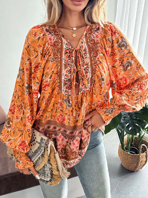 Frischen Sie Ihre Garderobe mit unserem lässigen Langarm-T-Shirt mit Blumenmuster auf, das für mühelose Eleganz im Alltag entworfen wurde.