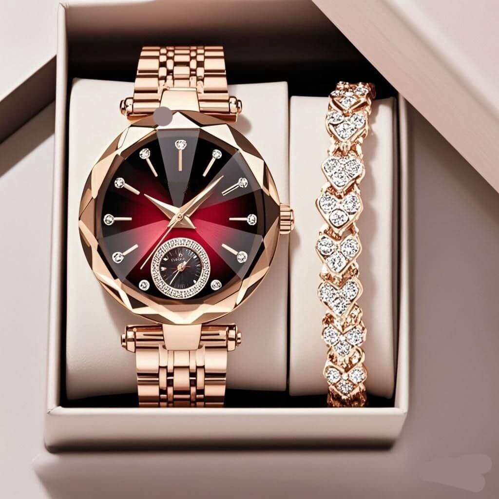 The Casual Quartz Watch with Diamond Bracelet Set is available in vibrant color options, making it easy to match with different outfits and personal styles. Whether worn to work, social gatherings, or casual outings, this set offers versatility, comfort, and timeless appeal.