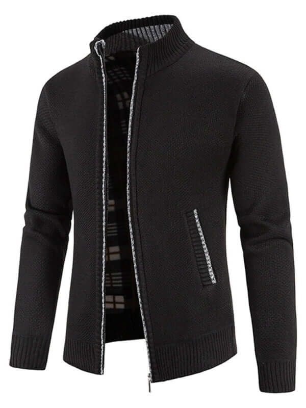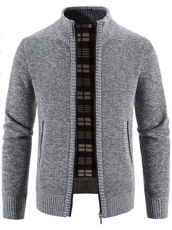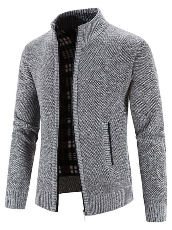 Lässige Strickjacke mit Stehkragen und Reißverschluss, weicher Alltagsstil für Herren
