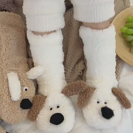 Niedliche, warme Plüschsocken mit Cartoon-Hund für Damen – rutschfest