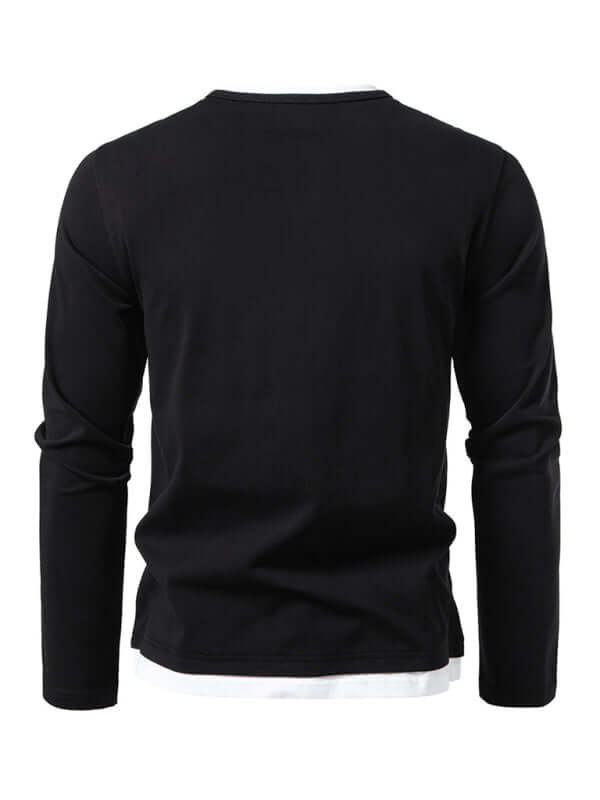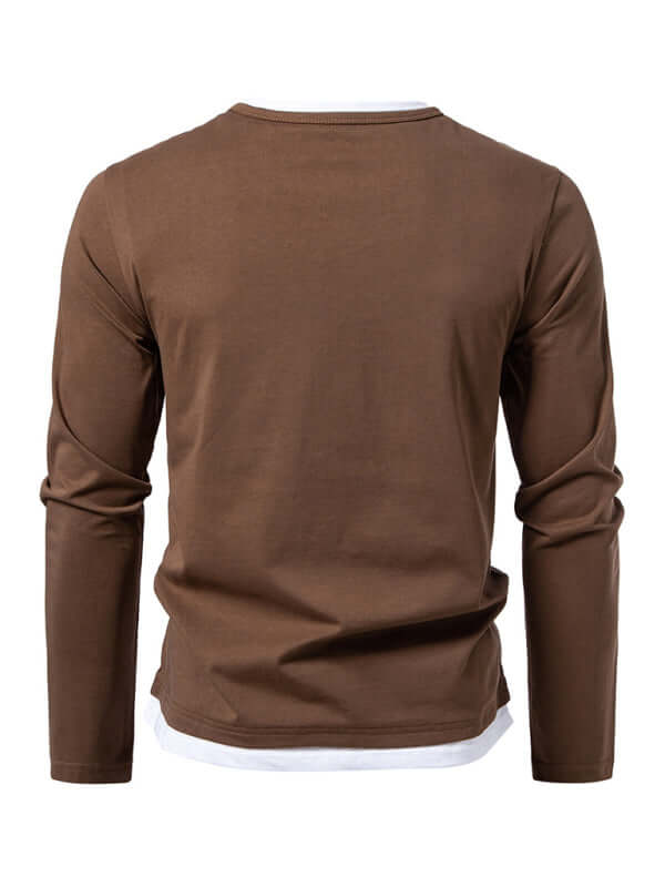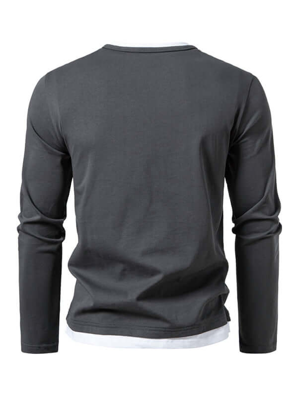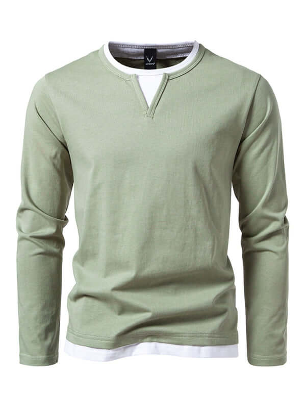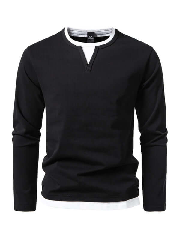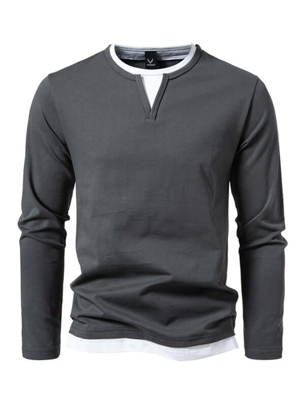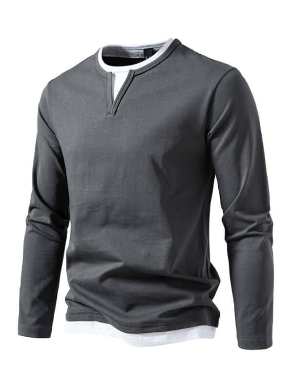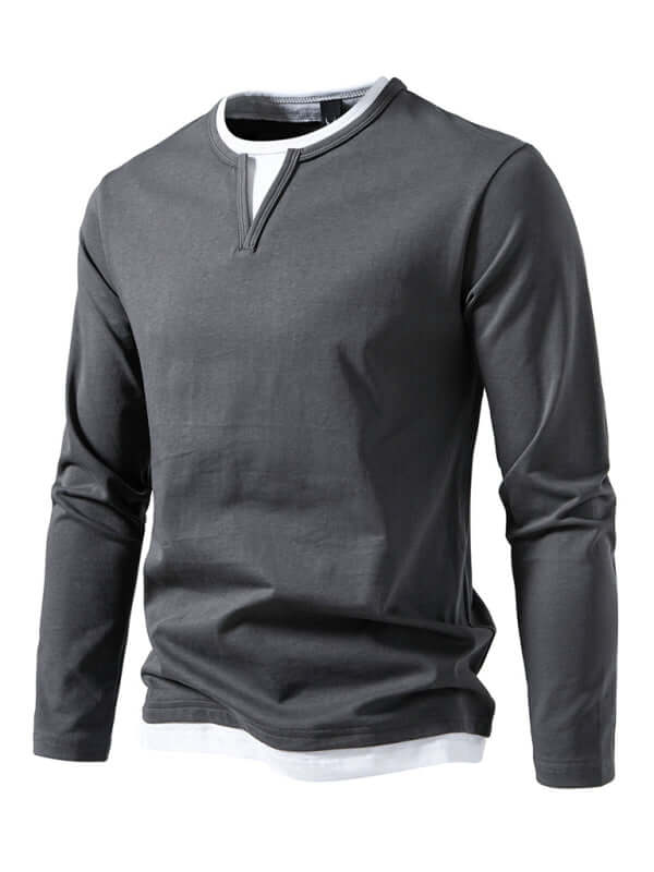 Doppellagiges, langärmeliges T-Shirt mit V-Ausschnitt und Fake-Zweiteiler-Optik für Herren