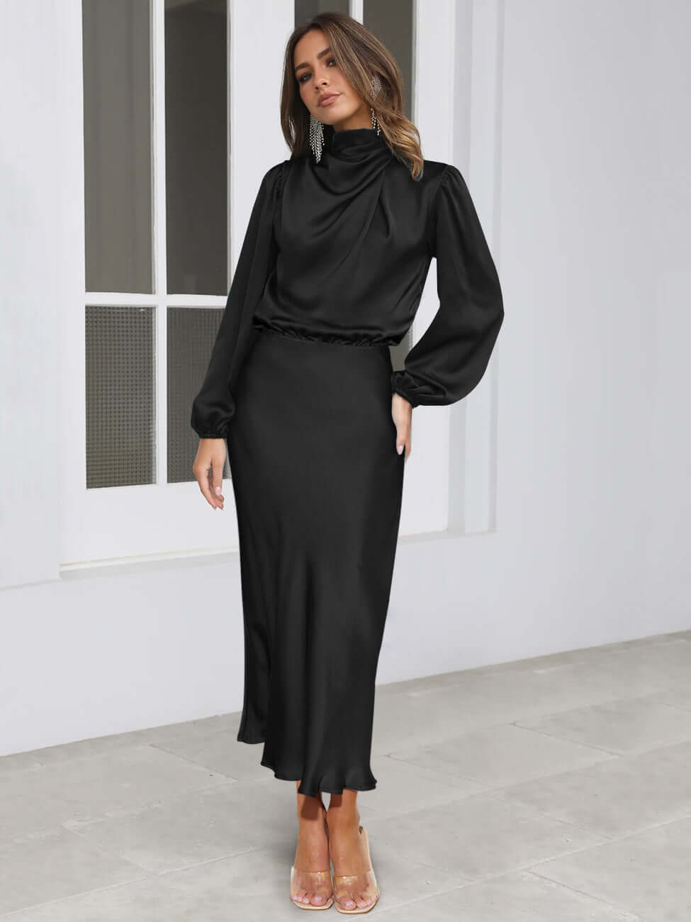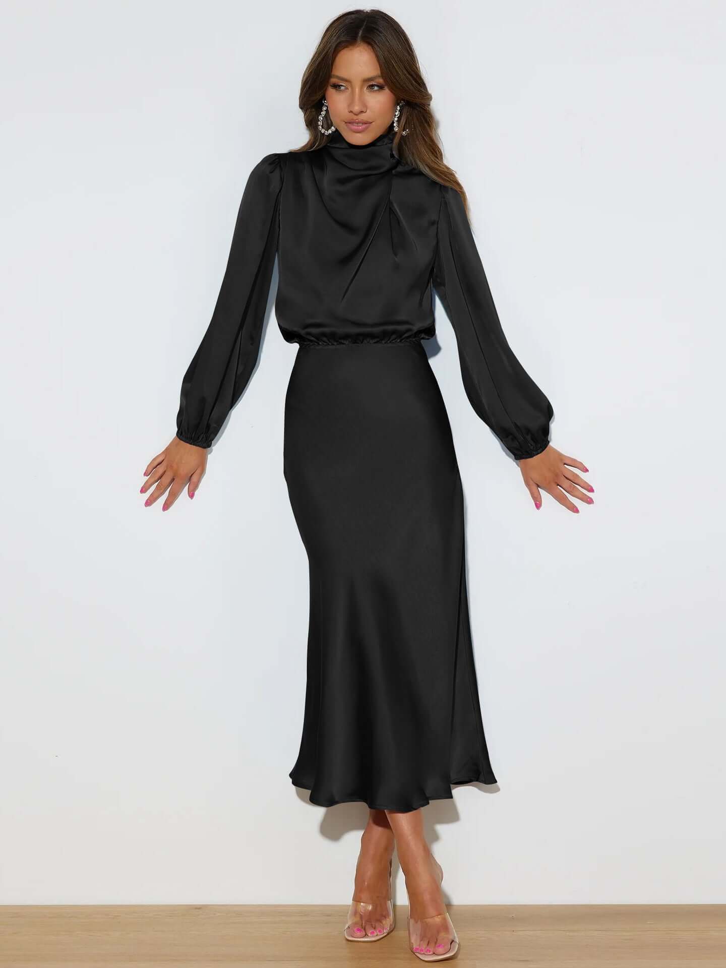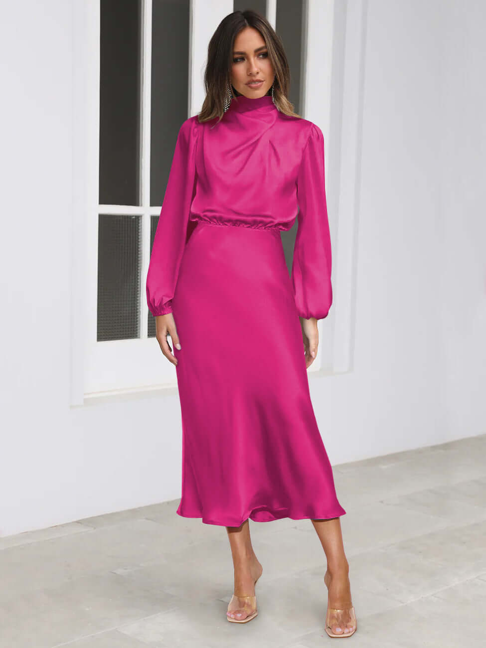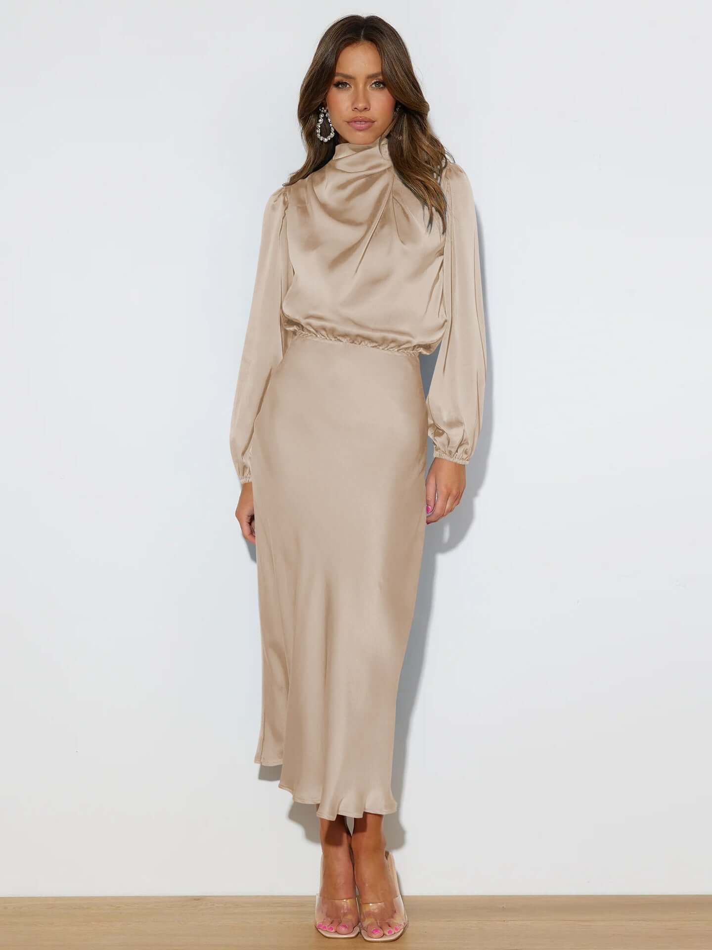 Elegant Satin Long-sleeved Halterneck Formal Evening Dress