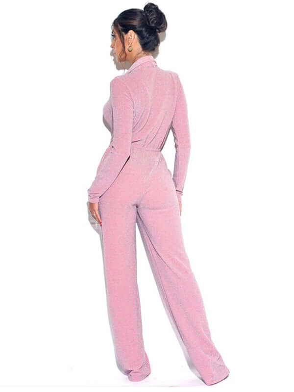Elegant Wide Leg V Neck Long Sleeve Jumpsuit for Women