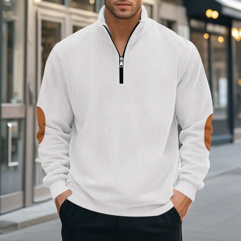 Half Zipper Men Long-sleeved Corduroy Sweater