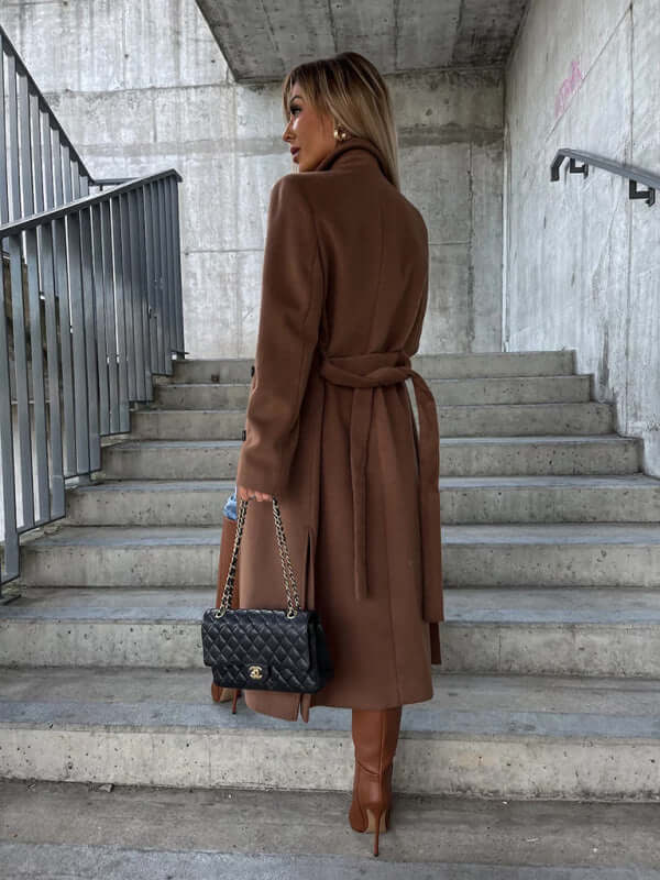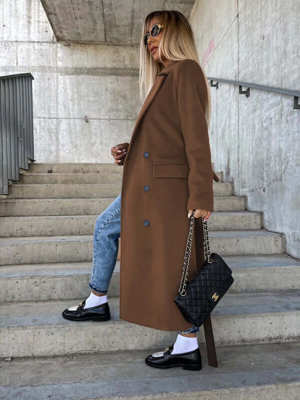 Long Sleeve Lapel Button Woolen Jacket for Women pairs perfectly with trousers, skirts, boots, and layered winter outfits. Its long length provides warmth and comfort while maintaining a clean and sophisticated seasonal style.