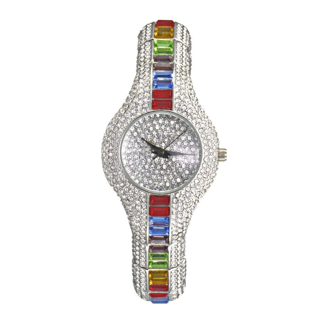 💎 Luxuriöse Diamant- und farbenfrohe Edelstein-Uhr – Elegante europäische Damenuhr