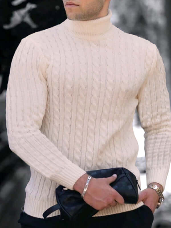 Ideal for spring and summer wear, this sweater provides breathable comfort without unnecessary bulk. The moderate stretch ensures flexibility during daily activities, making the Mens Turtleneck Tight Stretch Knit Sweater a reliable option for outings, leisure time, and everyday wear. Its lightweight construction also makes it suitable for layering under jackets or wearing on its own.
