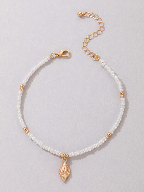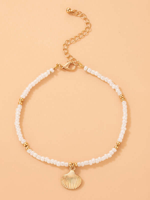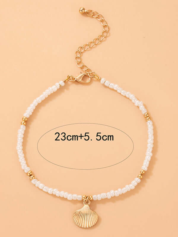 Das schlichte, einlagige Strand-Fußkettchen mit Reisperlen und Muschelanhänger ist ein zartes und stilvolles Accessoire, das jedem Outfit einen frischen Sommer-Touch verleiht. Die weichen Reisperlen und der elegante Muschelanhänger machen dieses Fußkettchen mit seinem schlichten und eleganten Design zum Inbegriff von Strand-Chic. Ob am Strand, im Urlaub oder einfach als femininer Akzent im Alltag – dieses Fußkettchen bietet die perfekte Balance aus Charme und Tragekomfort.