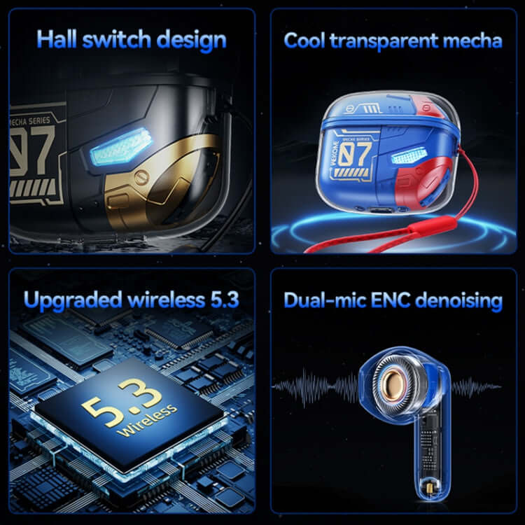Die kabellosen Bluetooth-Kopfhörer Wekome WS-07 Armor ENC mit Bluetooth 5.3 ermöglichen schnelles Koppeln und eine stabile Übertragung – ideal für alltägliche Gespräche und Musikwiedergabe. Der Hall-Schalter aktiviert beim Öffnen des Deckels einen coolen Lichteffekt und sorgt so für eine intuitive Bedienung.