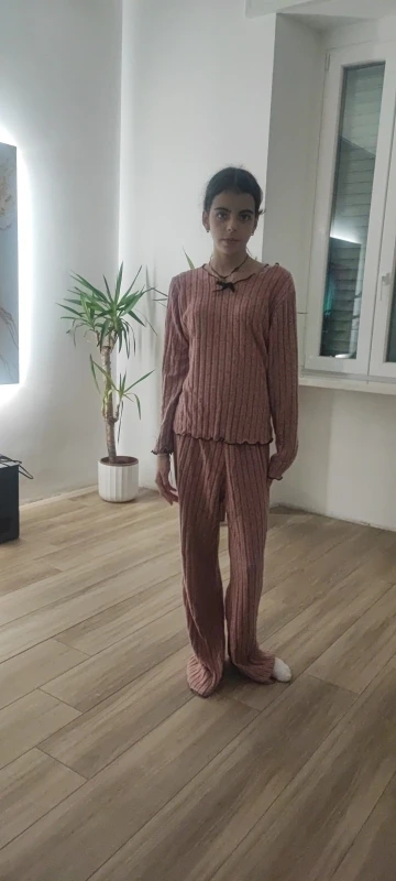 Women Ribbed Pajama Set Autumn Winter 2 Piece offers a relaxed yet flattering fit that drapes naturally on the body. Its clean, minimal design makes it suitable not only as sleepwear but also as casual homewear for all day comfort.