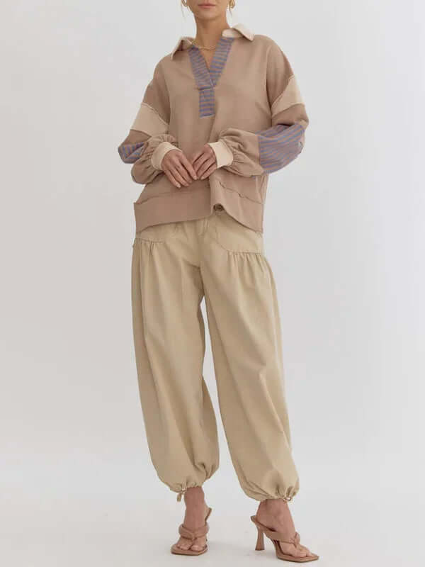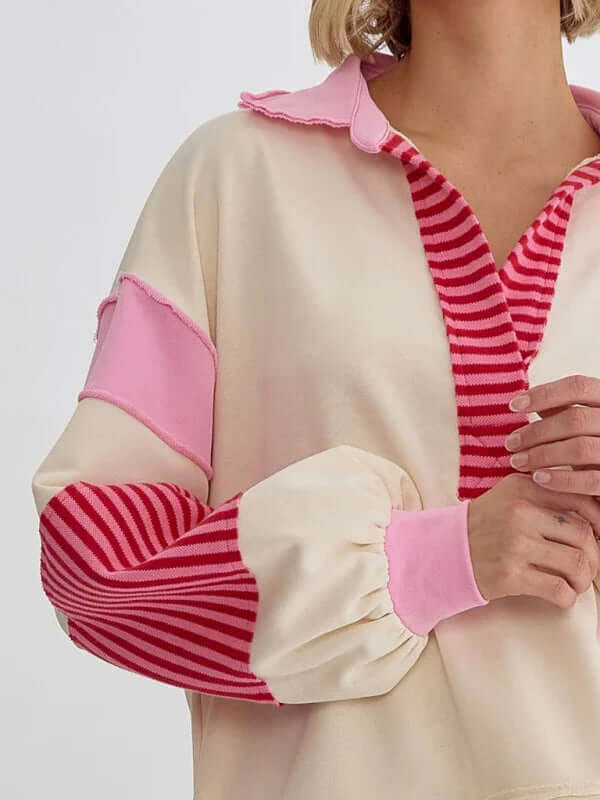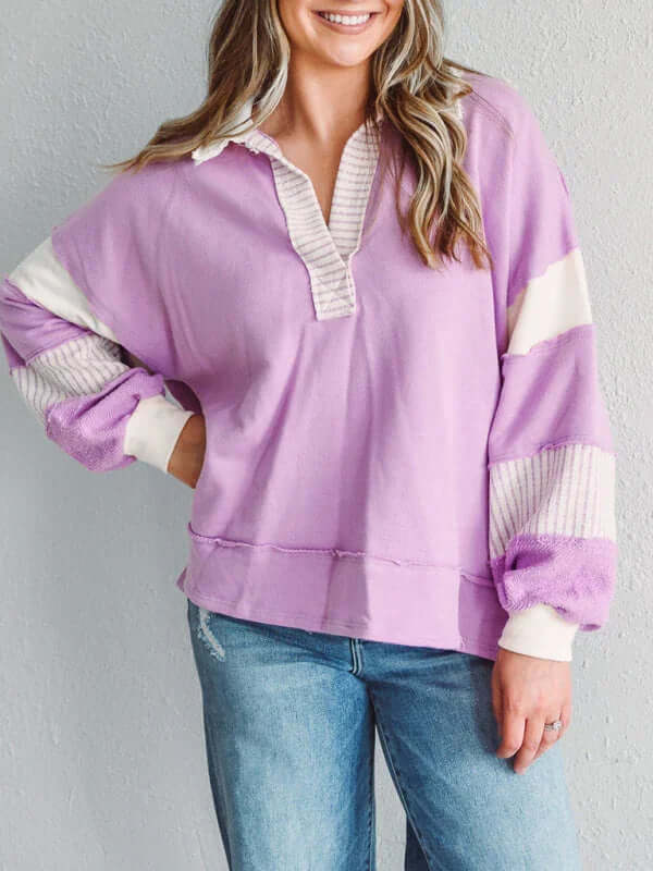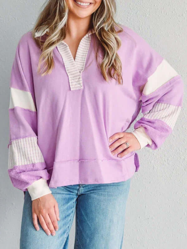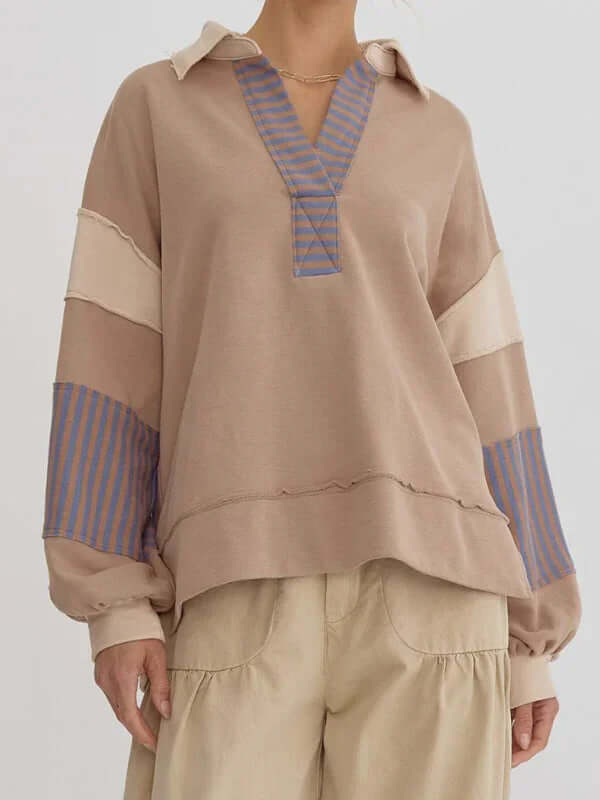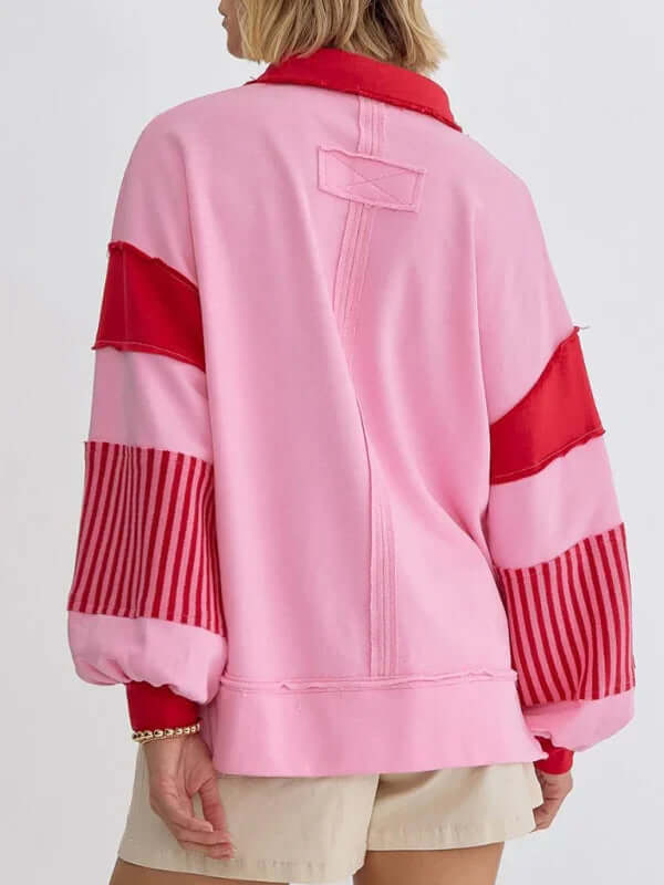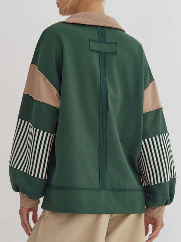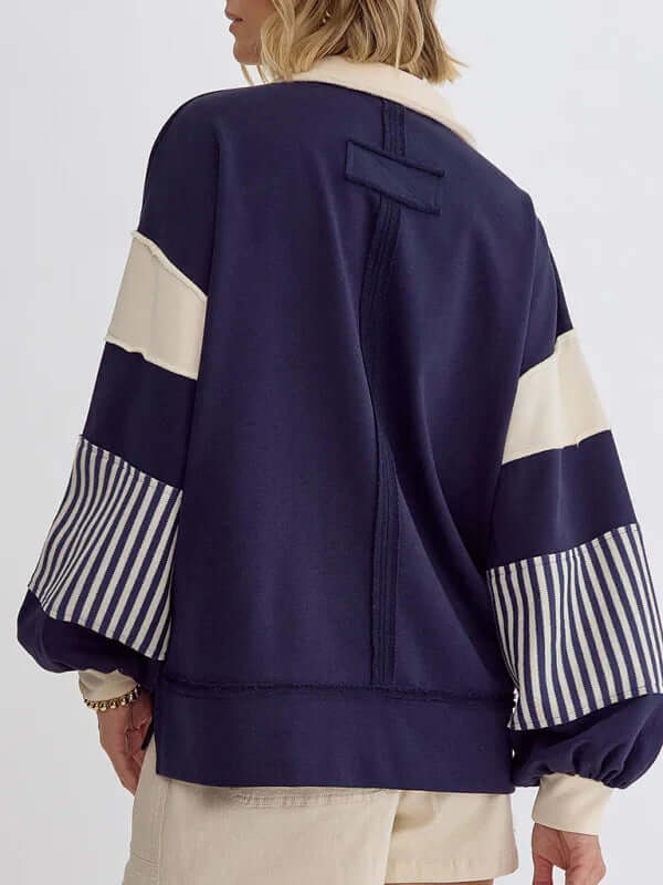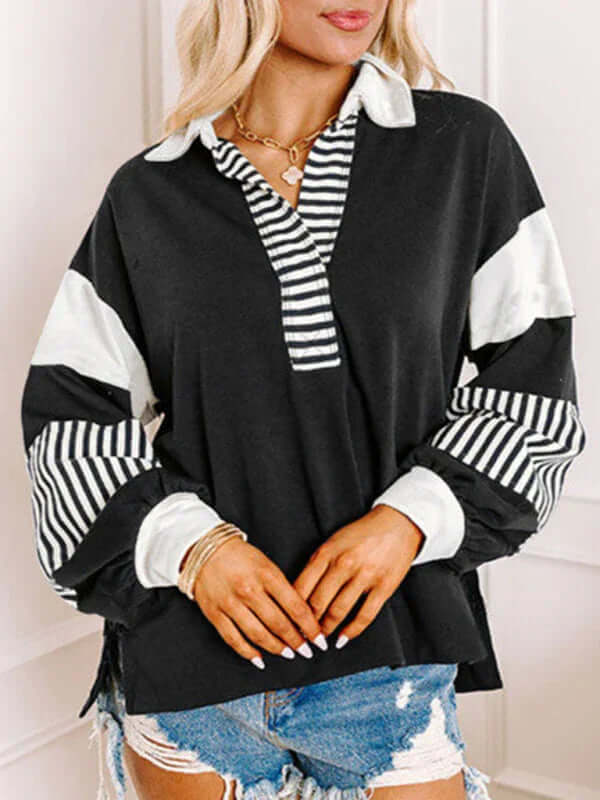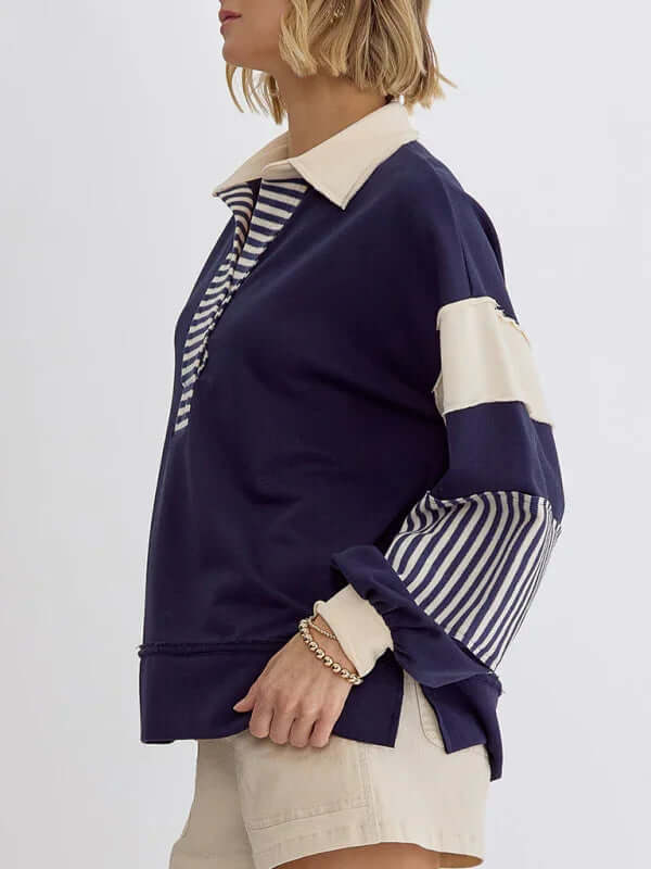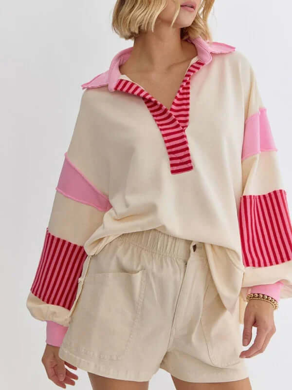 Dieser Oversized-Pullover mit Streifen und Polokragen ist perfekt für Frauen, die Wert auf funktionelle und gleichzeitig stilvolle Kleidung legen. Er vereint Praktikabilität und Eleganz auf ideale Weise. Dank des Verzichts auf Taschen wirkt er schlank, während das atmungsaktive Baumwollmaterial für hohen Tragekomfort sorgt – auch über längere Zeit. Ob für entspannte Ausflüge, Wochenendtrips oder gemütliche Tage zu Hause: Dieser Pullover passt sich mühelos Ihren saisonalen Bedürfnissen an.