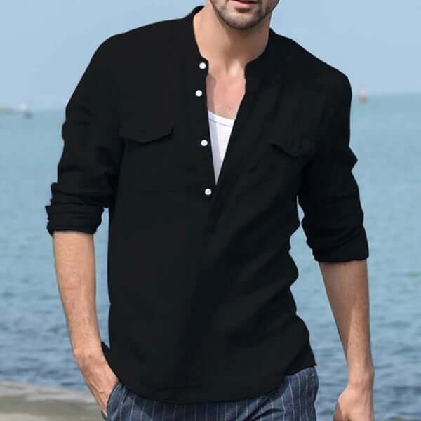 Long Sleeve Shirt Men Cotton Linen Casual Top