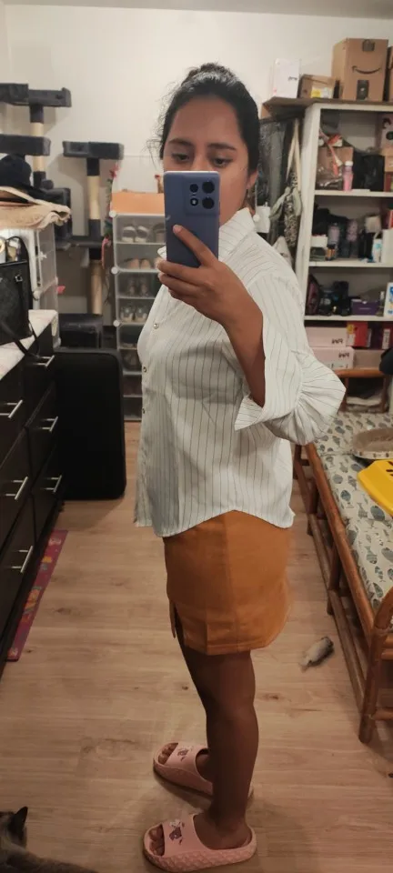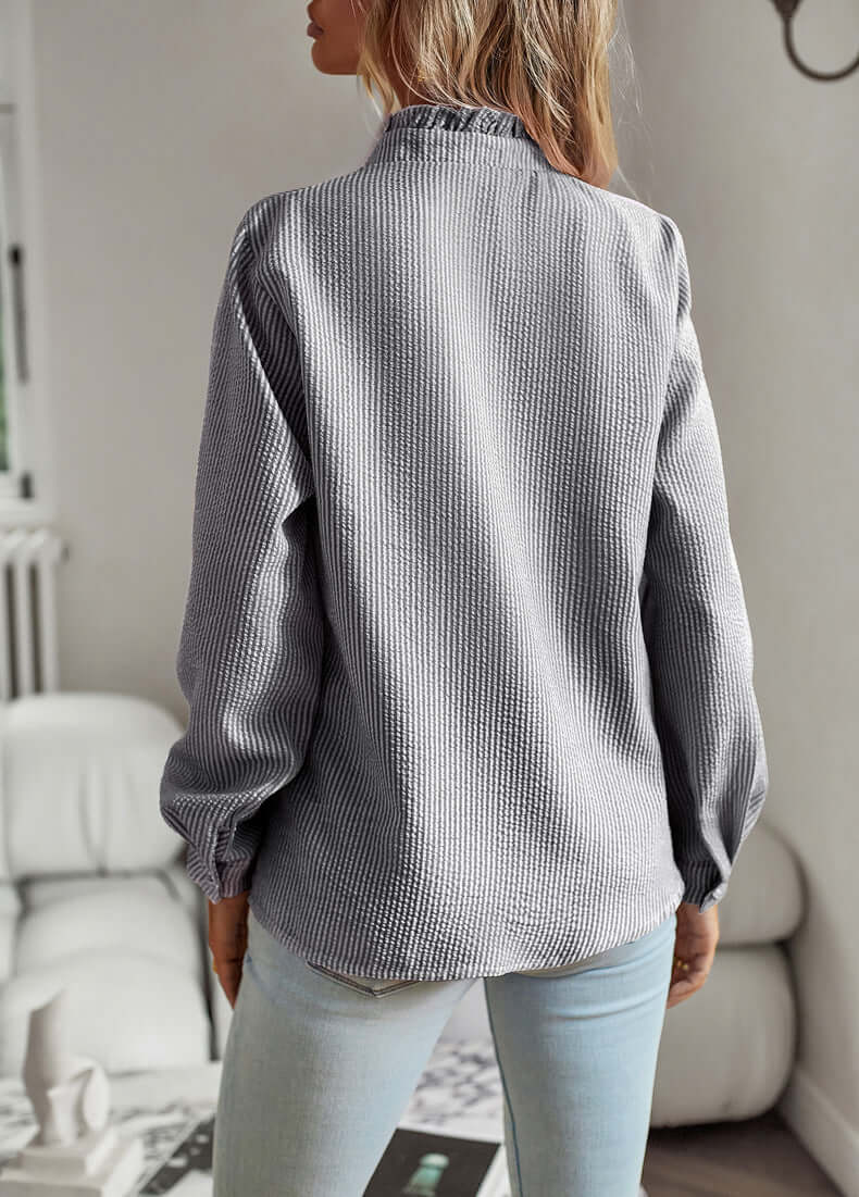 Chemisier rayé à manches longues pour femme, à volants et boutons