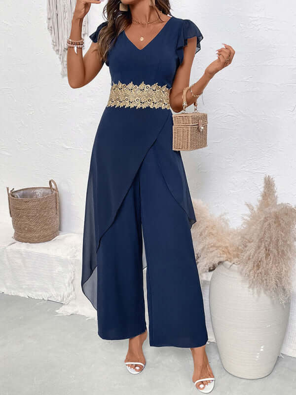 Casual Lace Splicing V Neck Jumpsuit Elegant Leisure