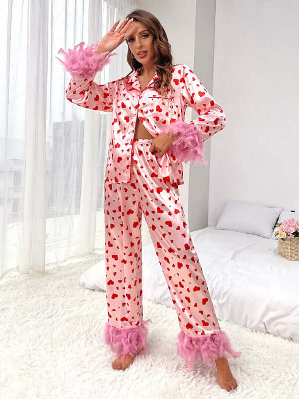 Heart Print Pajama Set Valentine Casual Sleepwear