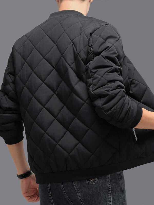 Mens Rhombic Quilted Baseball Jacket - Winter Warmth
