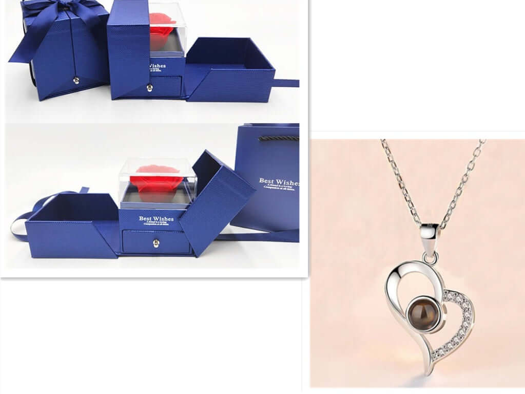 Metal Rose Jewelry Gift Box with Crystal Necklace
