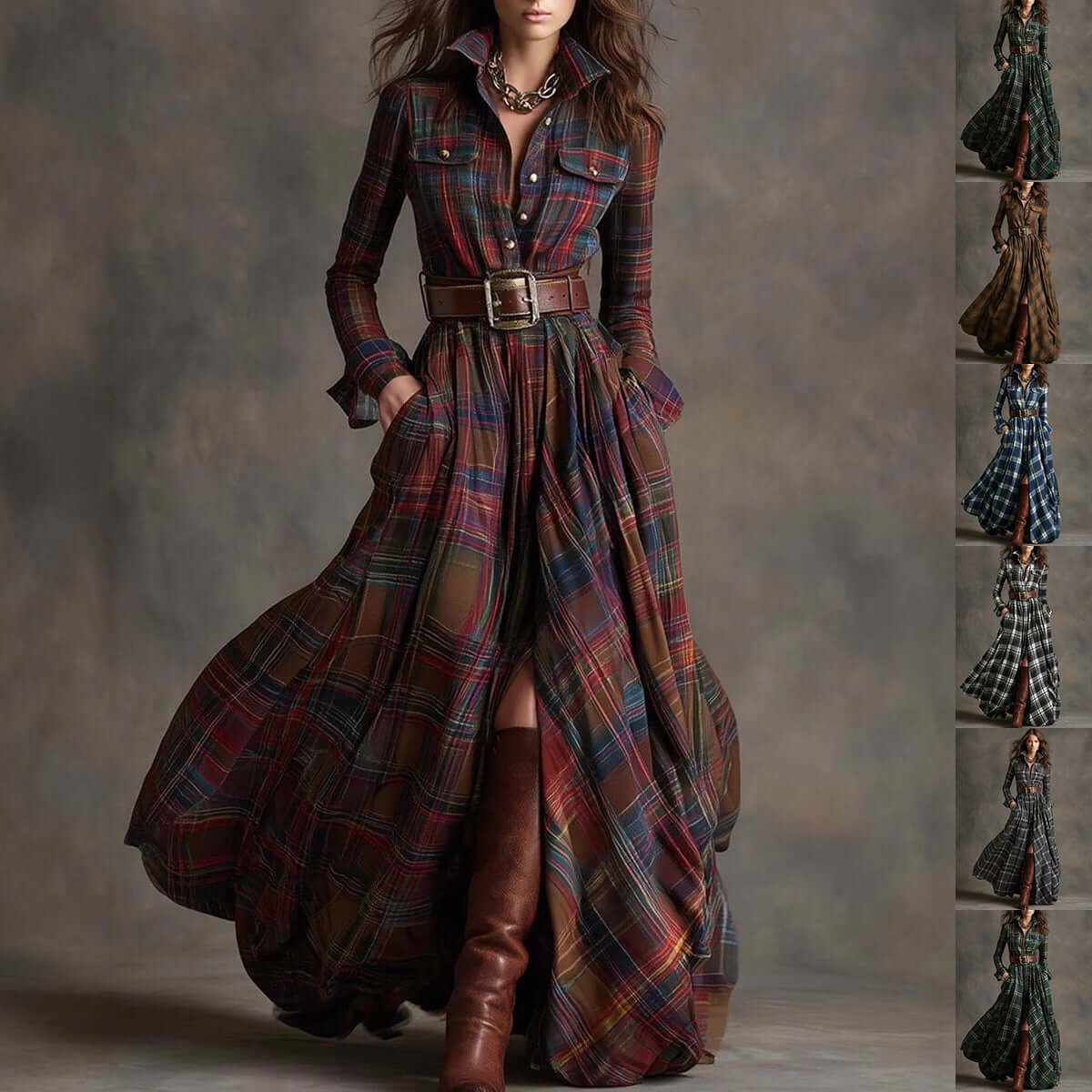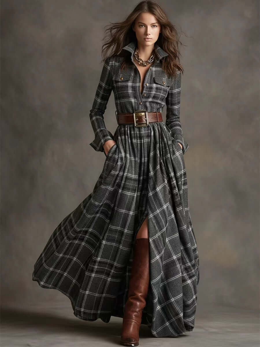 Plaid Shirt Dress Long Sleeve - Retro Fashion Step into a world of timeless elegance with the Plaid Shirt Dress... Read more