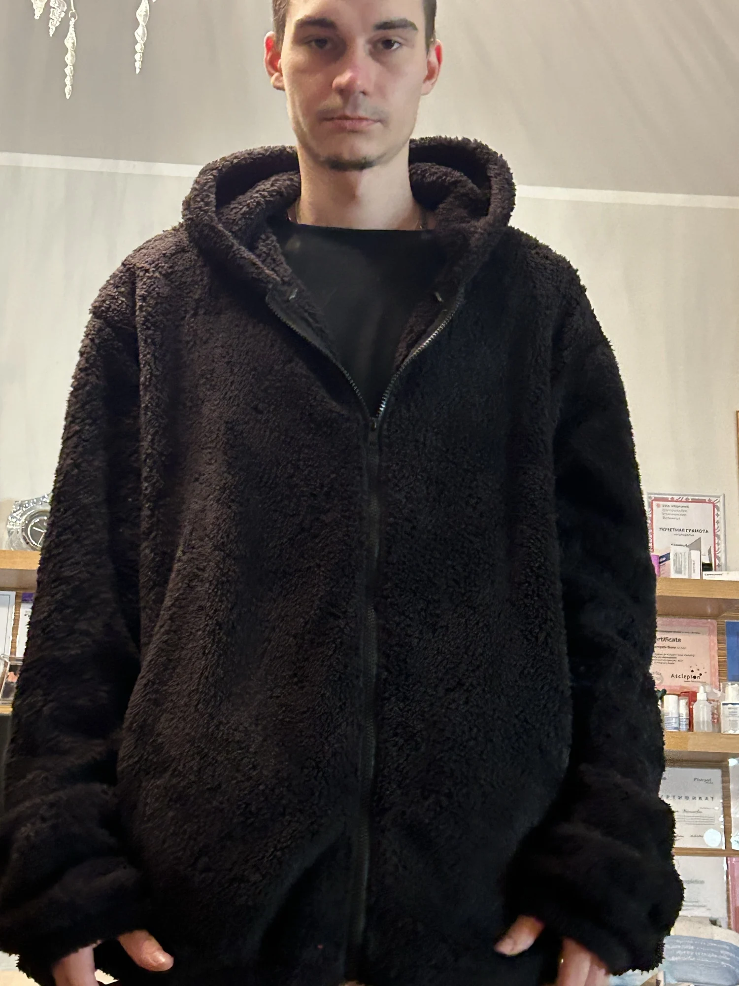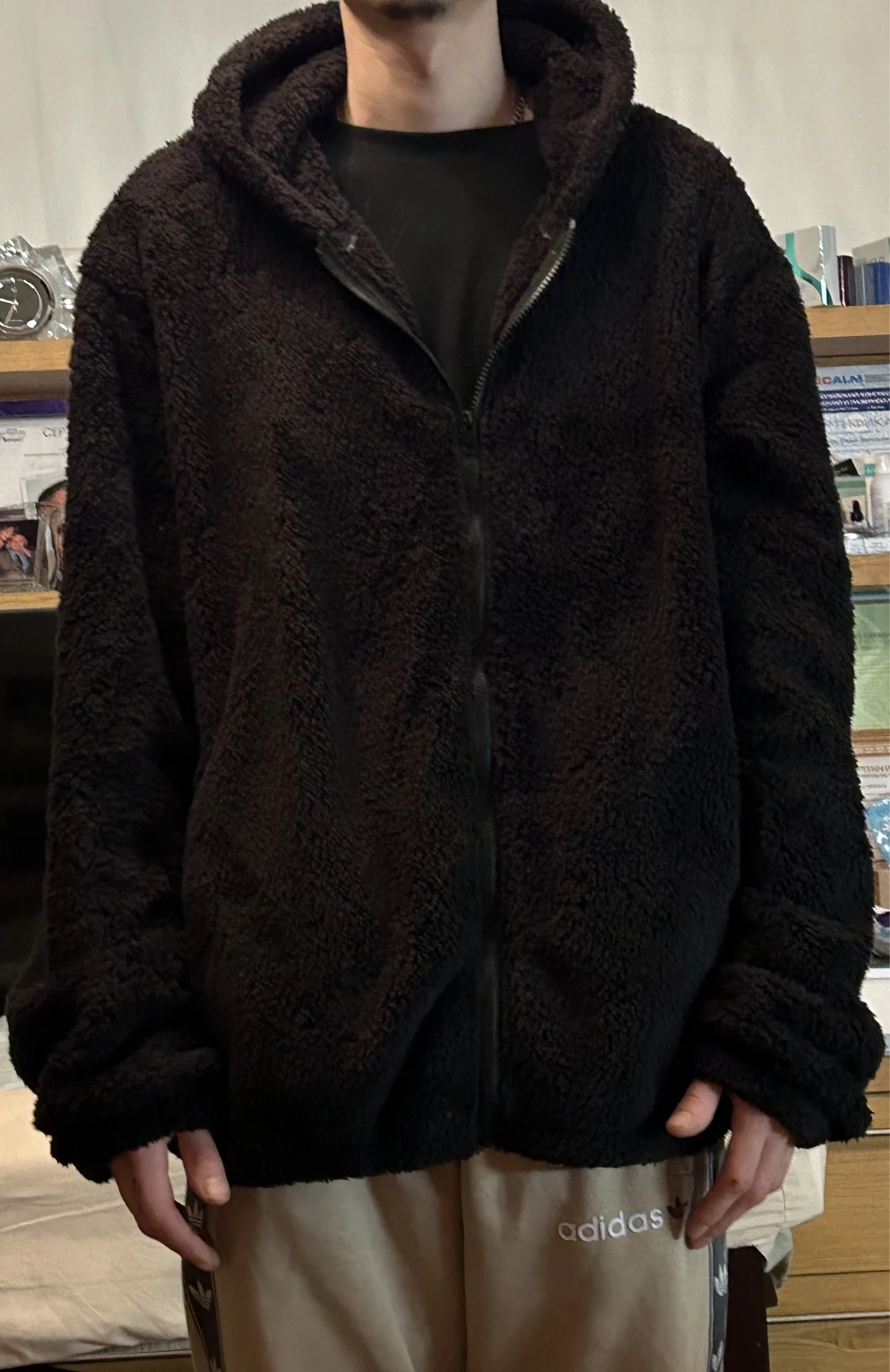 Plush Hooded Jacket Mens Autumn Winter Fleece Warm Coat