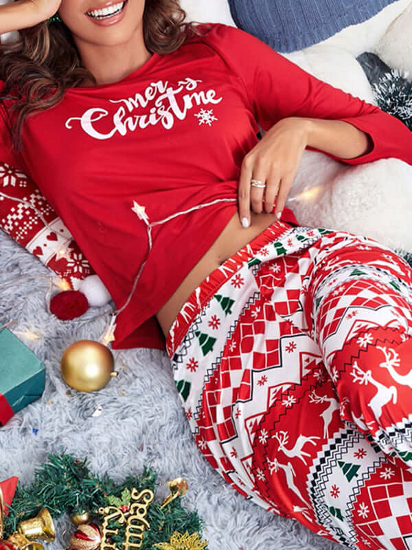 Reindeer Christmas Pajamas - Women's Winter Two Piece Set