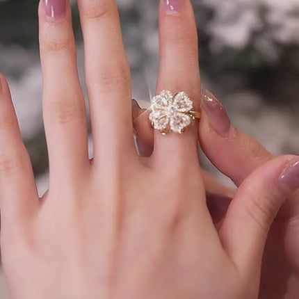 Rotatable Flower Ring Rhinestone Anti Anxiety Jewelry