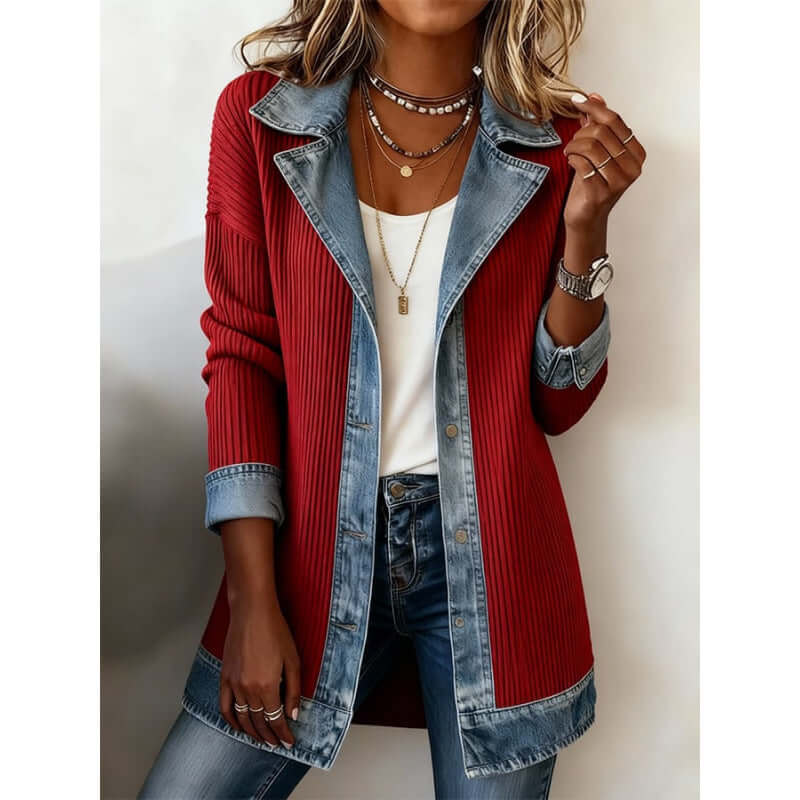 Denim Patchwork Jacket Fashion Commuter Lapel Top