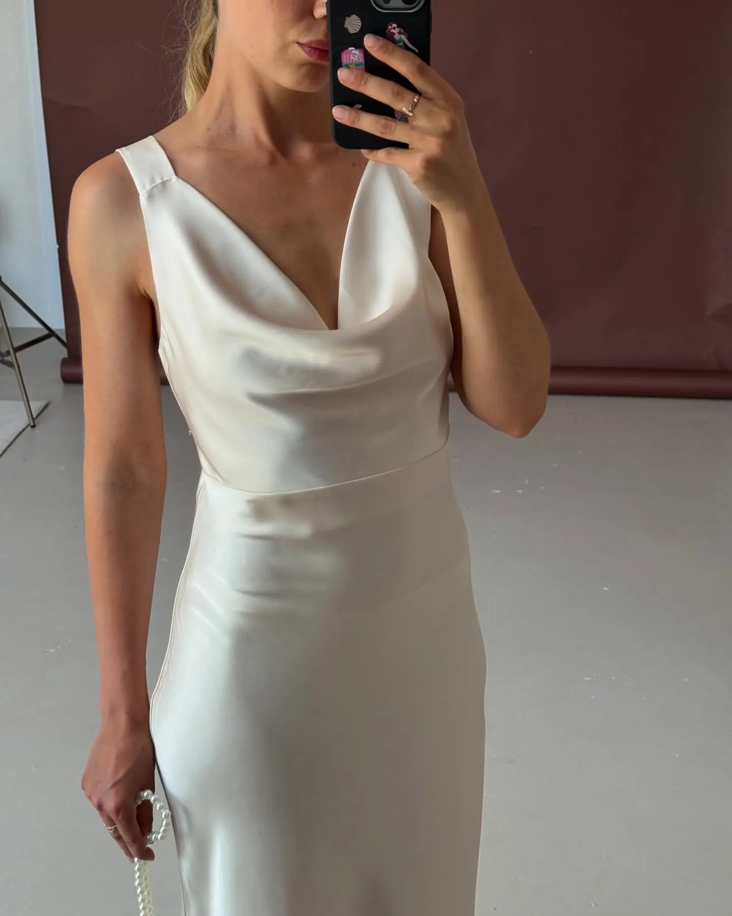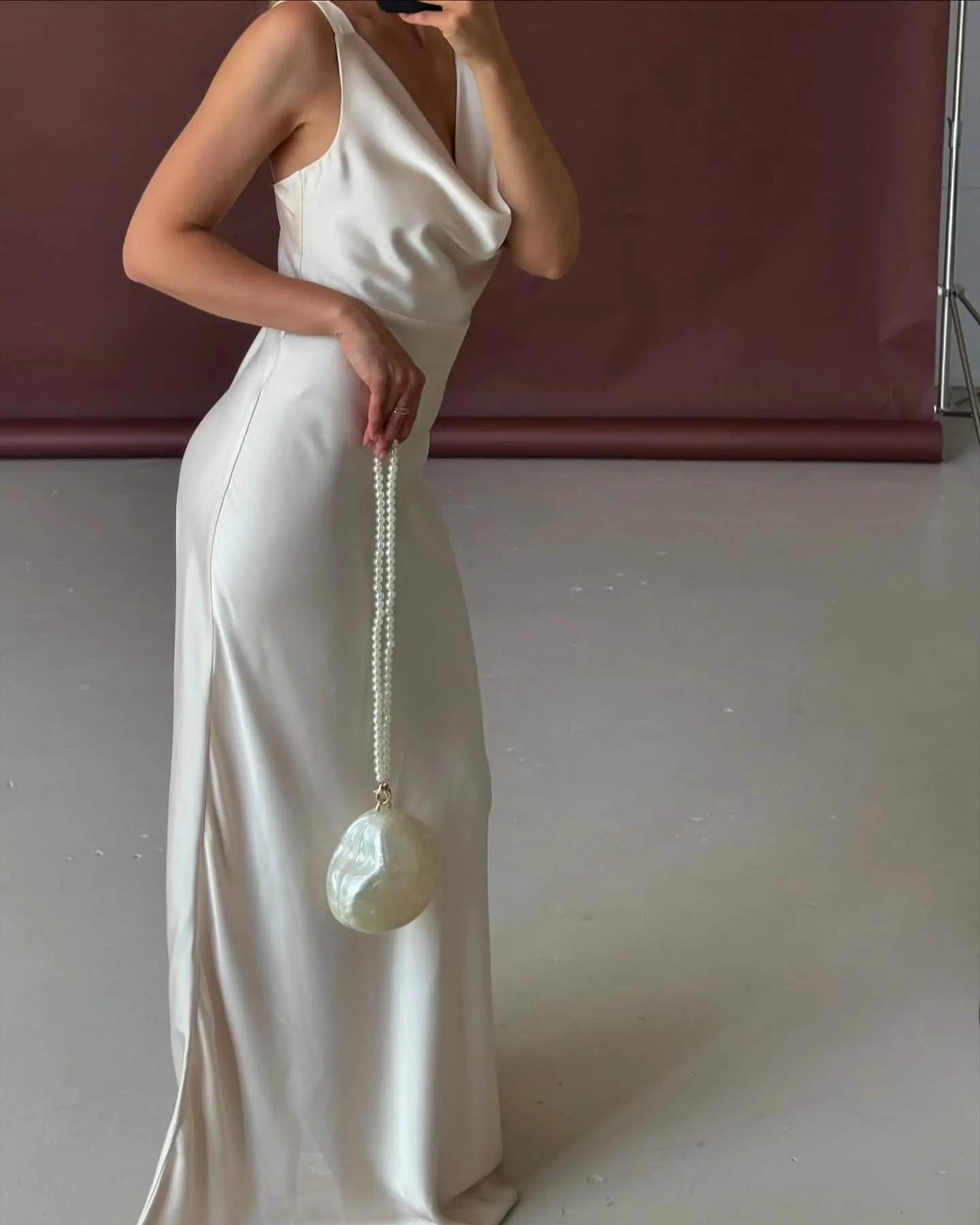 Women Fashion French Style Sleeveless V-Neck Dress Women Fashion French Style Sleeveless V-Neck Dress is a sophisticated satin dinner dress... Read more