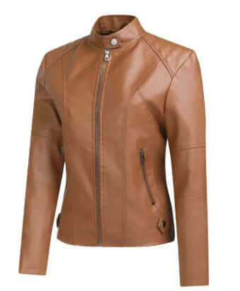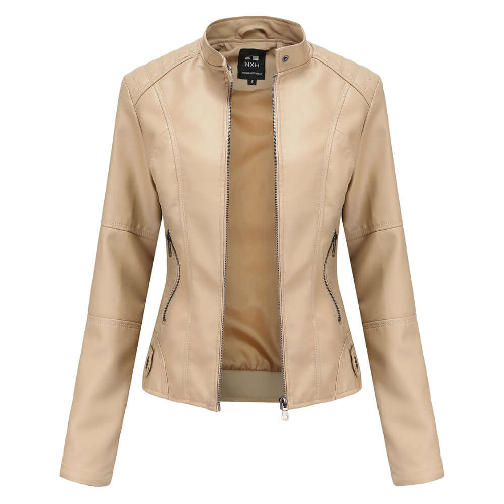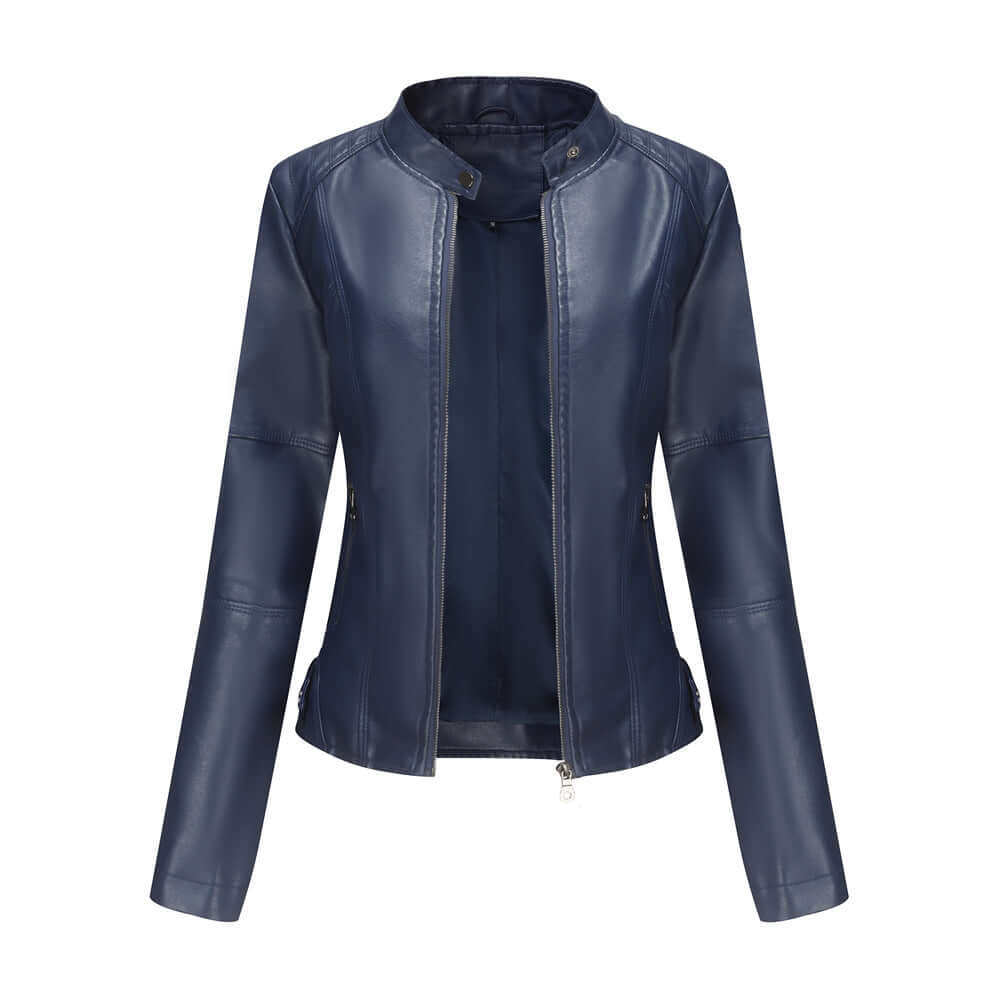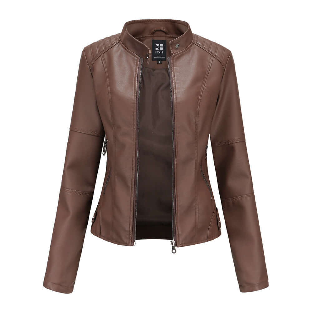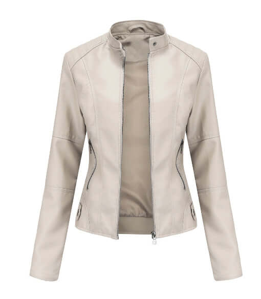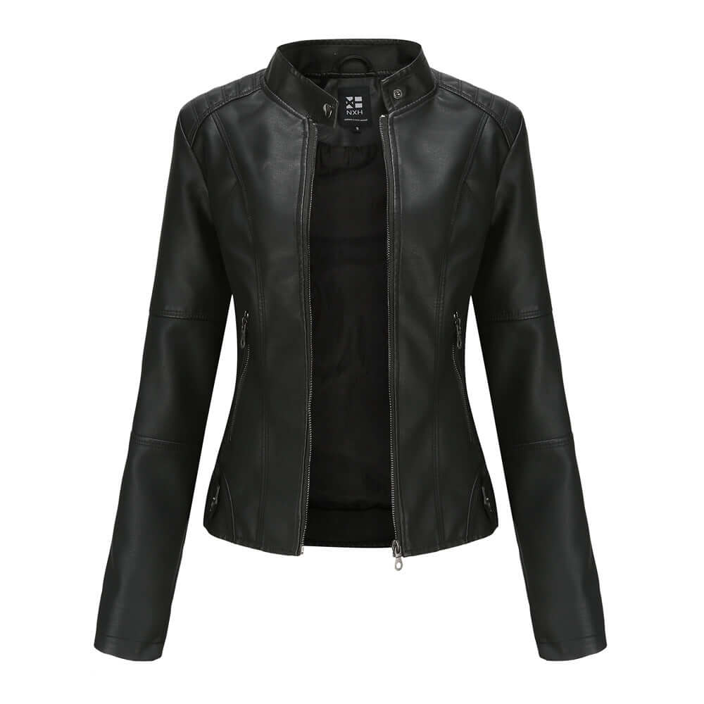 Womens Zip Up Leather Jacket - Chic Stand Collar Design